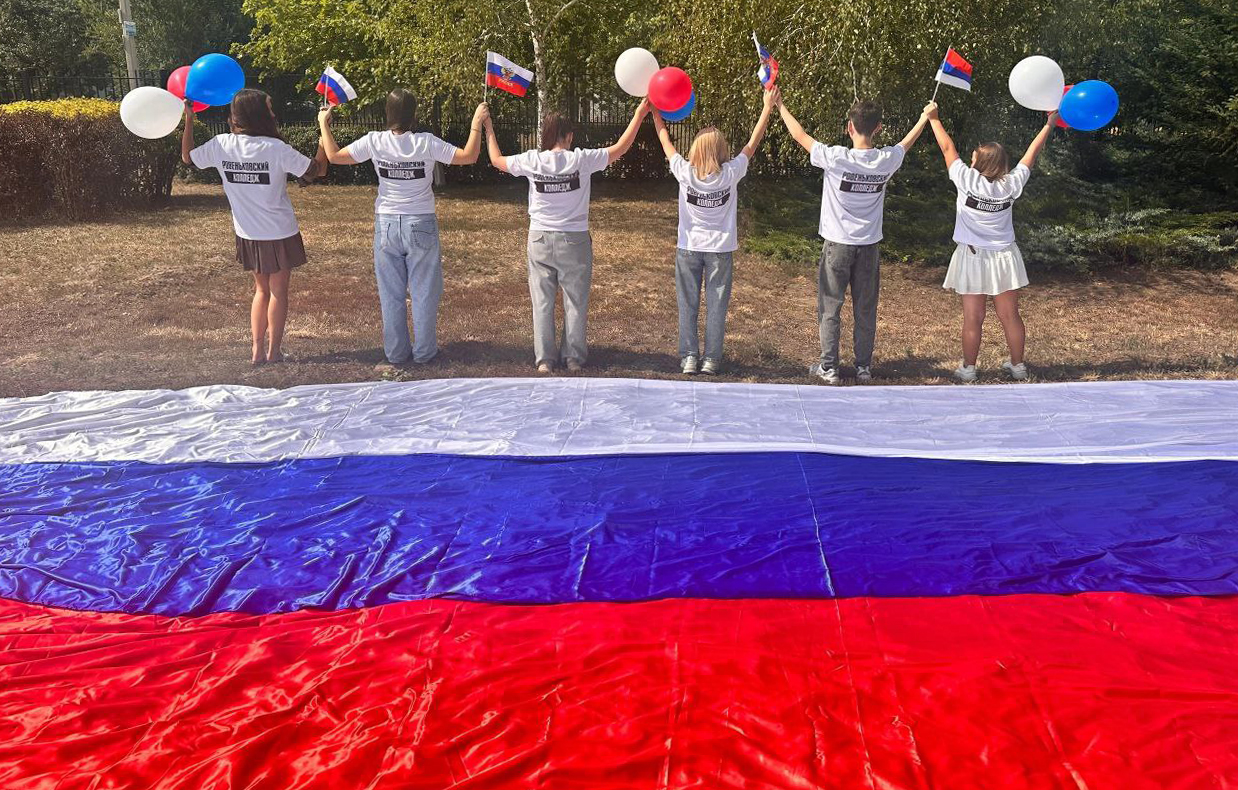Студенты и сотрудники Ровеньковского колледжа ЛГПУ присоединились к празднованию Дня Государственного флага Российской Федерации, организовав запоминающийся флешмоб!