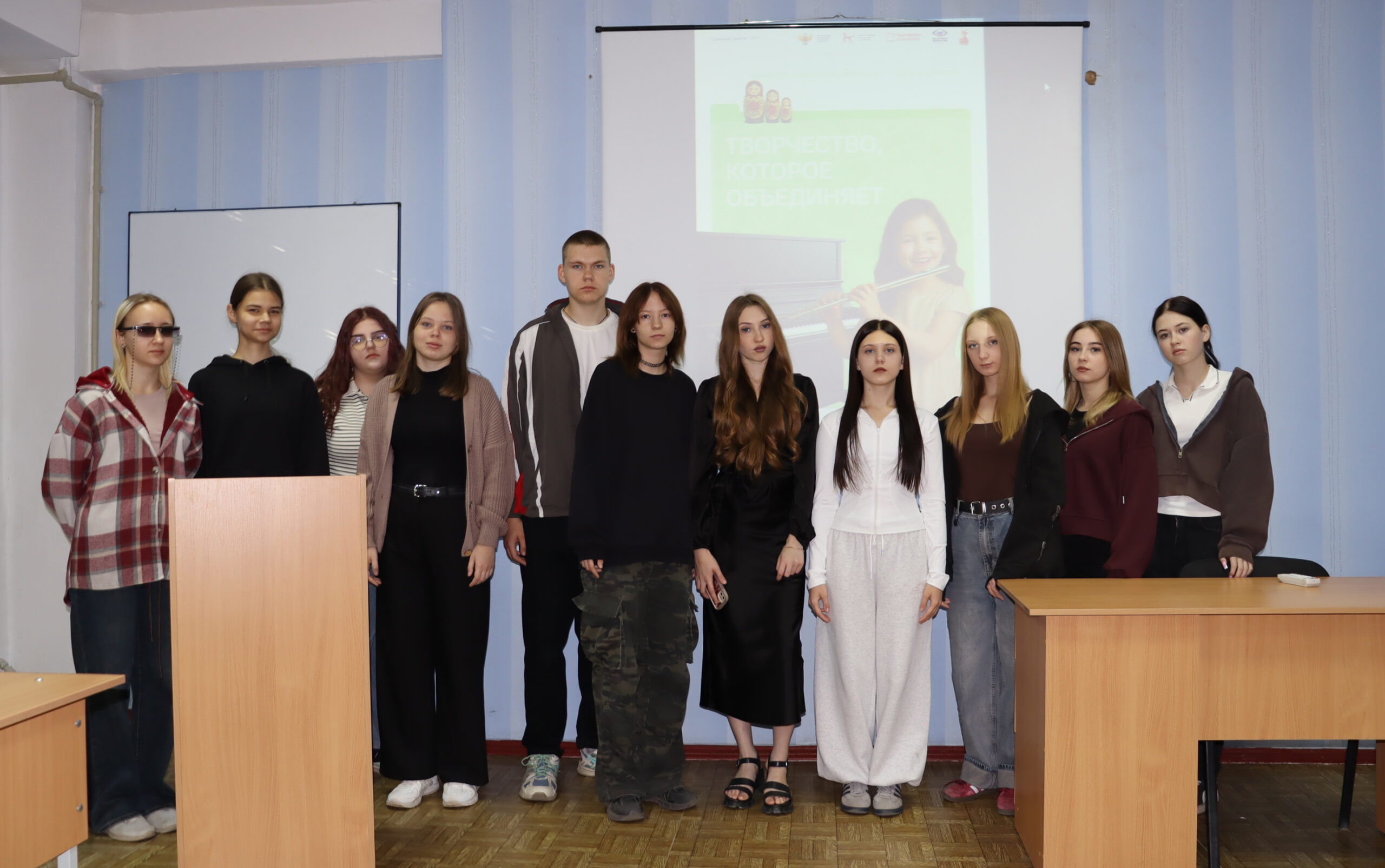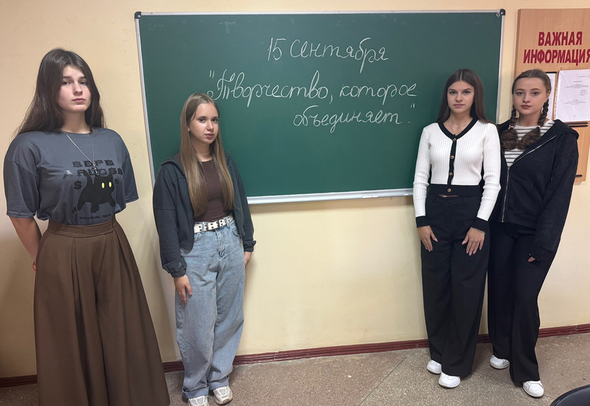 Обсуждением темы «Творчество, которое объединяет» 15 сентября началась новая учебная неделя в Ровеньковском колледже на очередном мероприятии из цикла «Разговоры о важном». Аккорды любимой музыки, строки любимых песен и стихотворений, кадры легендарных кинофильмов превращают всех нас в одну большую и крепкую семью. Замечательно, что сегодня, благодаря интернет-коммуникациям мы имеем доступ к произведениям искусства и литературы, присоединяемся к лучшим образцам русского искусства.